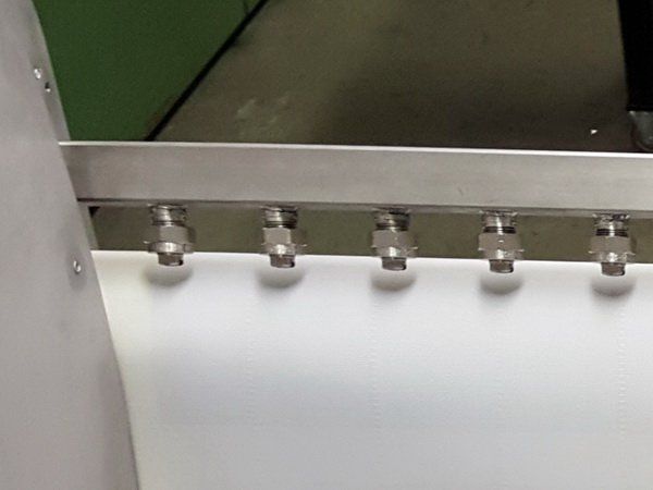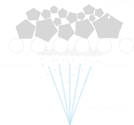 Das Filtergewebe wird mit Flüssigkeit durch Düsen unterhalb der Filterfläche durchspült.