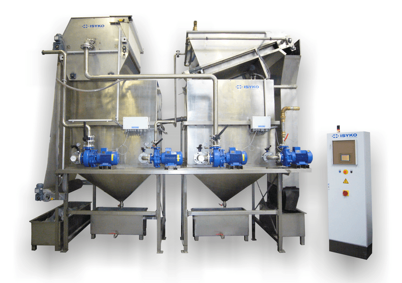 Über einen Schrägbandfilter, bestückt mit einem Endlosfilterband, werden in der Vorfiltration die groben Verschmutzungen ausgetragen. Diese leicht lösbaren Verschmutzungen lassen sich problemlos vom Filtergewebe trennen und können somit separat entsorgt werden.