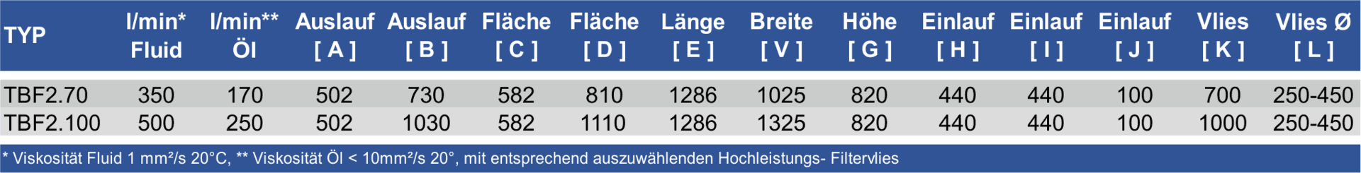 Der TBF 2 ist für alle gängigen Filtervliese mit einer Breite von 700 mm, oder 1000 mm ausgelegt